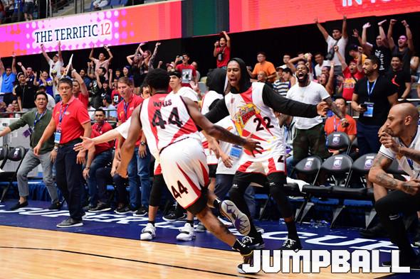 [점프볼=마카오/박상혁 기자] 19일 마카오 탑섹 멀티스포츠 파빌리온에서 열린 '동아시아 슈퍼리그-터리픽12' 대회 3일차 산미구엘 비어맨과 류큐 골든 킹스의 경기, 산미구엘 비어맨의 가뉴라스 로저가 환호하고 있다.