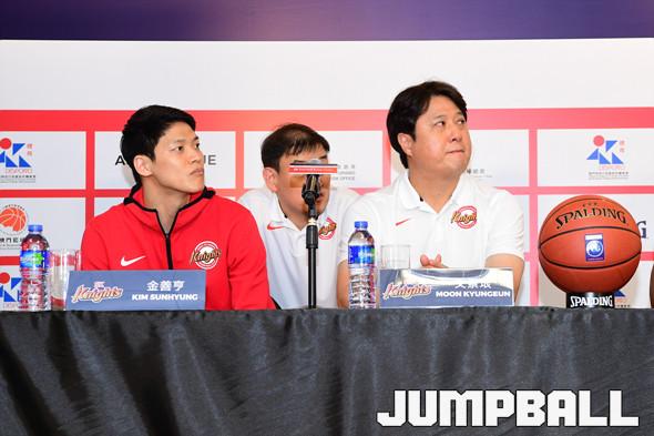 [점프볼=마카오/박상혁 기자] 20일 마카오 탑섹 멀티스포츠 파빌리온 5층 기자회견장에서 열린 '터리픽 12 파이널 4' 미디어 데이, 서울SK 문경은 감독과 김선형이 진지한 모습으로 미디어데이에 참석하였다.