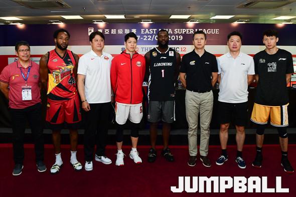 [점프볼=마카오/박상혁 기자] 20일 마카오 탑섹 멀티스포츠 파빌리온 5층 기자회견장에서 열린 '터리픽 12 파이널 4' 미디어 데이, 미디어데이에 참석한 서울SK 문경은 감독과 김선형, 산미구엘 리오 오스트리아 감독과 데즈민 웰스, 저장광샤 리춘장 감독과 자오얀하오, 랴오닝의 궈시쾅 감독과 랜스 스티븐슨이 기념 촬영을 하고 있다.