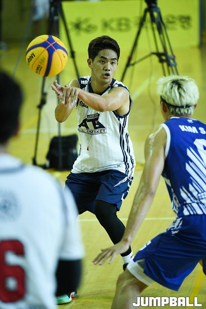 [점프볼=강남/유용우 기자] 22일 서울 강남구 일원동에 위치한 중동고등학교에서 열린 ‘KB국민은행 리브(LiiV) 2019 KBA 3x3 코리아투어 파이널’ 2일차, ATB 신재호가 팀원에게 패스를 내주고 있다.