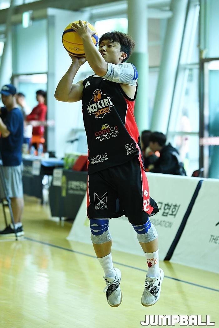 [점프볼=강남/유용우 기자] 22일 서울 강남구 일원동에 위치한 중동고등학교에서 열린 ‘KB국민은행 리브(LiiV) 2019 KBA 3x3 코리아투어 파이널’ 2일차, 오픈부 코끼리프렌즈 한준혁이 2점슛을 던지고 있다.