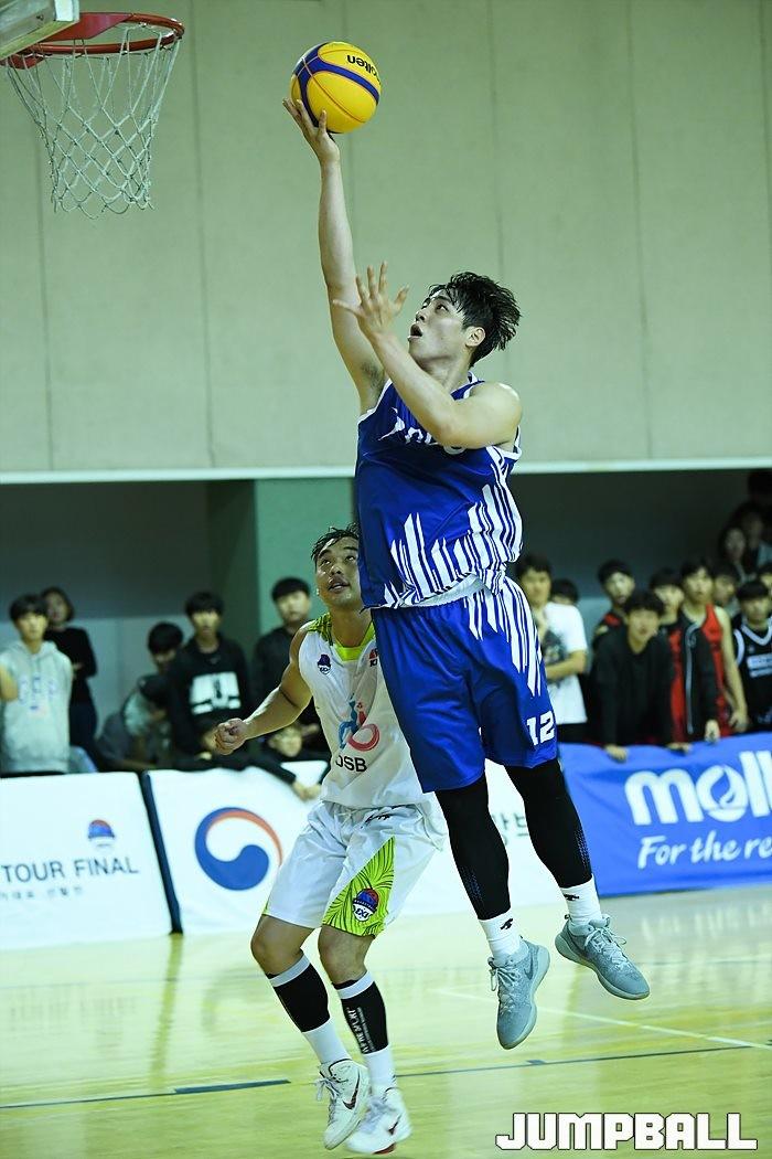 [점프볼=강남/유용우 기자] 22일 서울 강남구 일원동에 위치한 중동고등학교에서 열린 ‘KB국민은행 리브(LiiV) 2019 KBA 3x3 코리아투어 파이널’ 2일차, 오픈부 4강 DSB와 PEC의 경기에서 PEC 안정훈이 레이업을 성공시키고 있다.