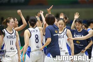 25일(이하 한국시간) 인도 뱅갈루루 스리 칸티라바 체육관에서 열린 2019 FIBA 여자농구 아시아컵 A조 인도와의 예선전 두 번째 경기, 한국 대표팀의 이문규 감독이 선수들을 모아놓고 작전을 지시하고 있다.