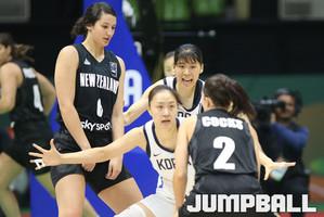 27일 인도 뱅갈루루 스리 칸티라바 체육관에서 열린 2019 FIBA 여자 아시아컵 농구대회 한국과 뉴질랜드의 6강 플레이오프 경기, 한국 대표팀의 진안이 상대 수비의 빈틈을 파고 들어 레이업슛으로 득점을 만들어 내고 있다.