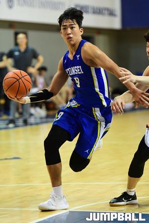 [점프볼=천안/홍기웅 기자] 30일 상명대학교 천안캠퍼스 체육관에서 열린 '2019 KUSF 대학농구 U-리그' 상명대와 연세대의 경기. 연세대 김무성이 골밑 돌파를 시도하고 있다.