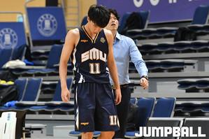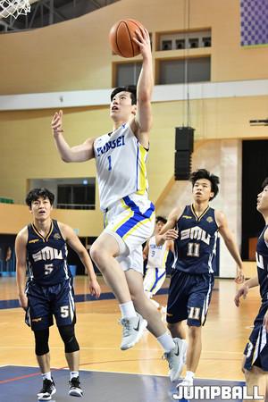 [점프볼=천안/홍기웅 기자] 30일 상명대학교 천안캠퍼스 체육관에서 열린 '2019 KUSF 대학농구 U-리그' 상명대와 연세대의 경기. 연세대 신승민이 훅슛을 시도하고 있다.