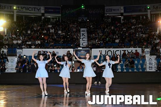 5일 전주 실내체육관에서 열린 '2019-2020 현대모비스 프로농구' 전주 KCC 와 서울 SK의 공식 개막전, 걸그룹 베리굿이 경기전 공연을 펼치고있다.