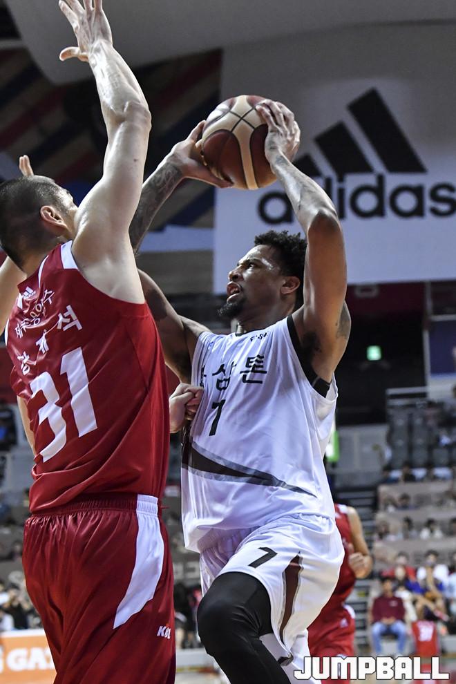 [점프볼=고양/홍기웅 기자] 5일 고양종합체육관에서 열린 '2019-2020 현대모비스 프로농구' 고양 오리온과 안양 KGC의 경기. KGC 크리스 맥컬러가 골밑슛을 시도하고 있다.
