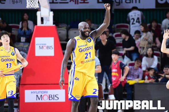 [점프볼=창원/박상혁 기자] 5일 창원실내체육관에서 열린 '2019-2020 현대모비스 프로농구' 창원 LG와 서울 삼성의 경기, 삼성 제임스가 승리가 확정되자 기뻐하고 있다.