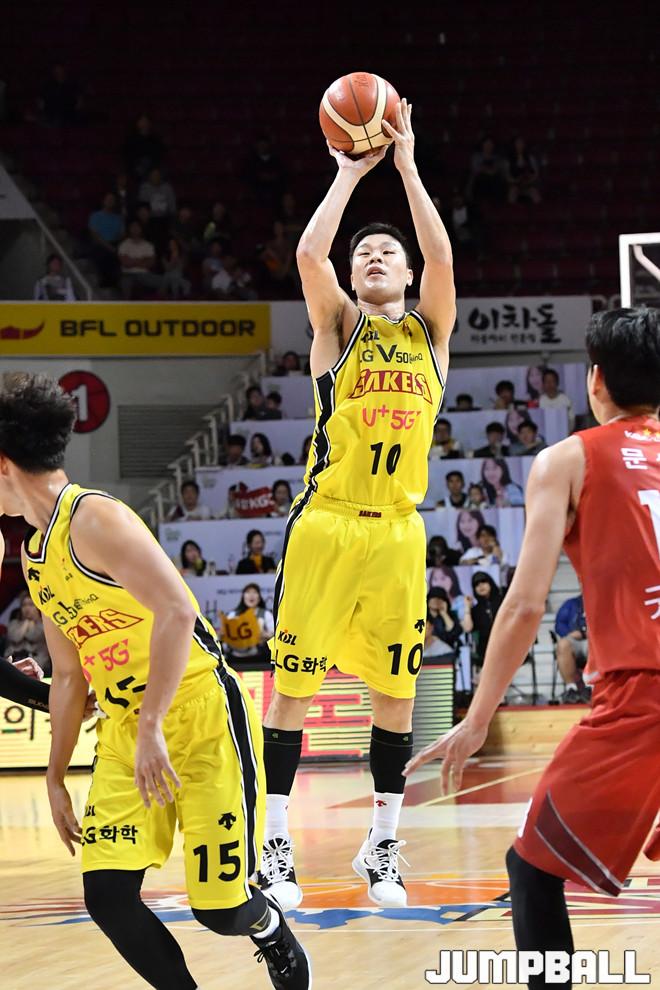 [점프볼=안양/홍기웅 기자] 6일 안양실내체육관에서 열린 '2019-2020 현대모비스 프로농구' 안양 KGC와 창원 LG의 경기. LG 조성민이 3점슛을 던지고 있다.