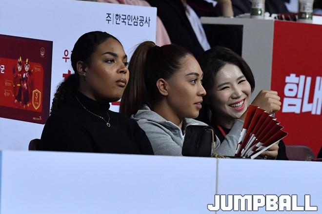 [점프볼=안양/홍기웅 기자] 6일 안양실내체육관에서 열린 '2019-2020 현대모비스 프로농구' 안양 KGC와 창원 LG의 경기. 여자프로배구 IBK기업은행 어나이가 농구를 관람하고 있다.