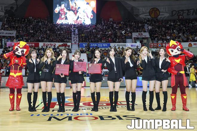 [점프볼=안양/홍기웅 기자] 6일 안양실내체육관에서 열린 '2019-2020 현대모비스 프로농구' 안양 KGC와 창원 LG의 경기. 하프타임 시간에 아이돌 우주소녀가 공연을 마치고 기념촬영을 하고 있다.