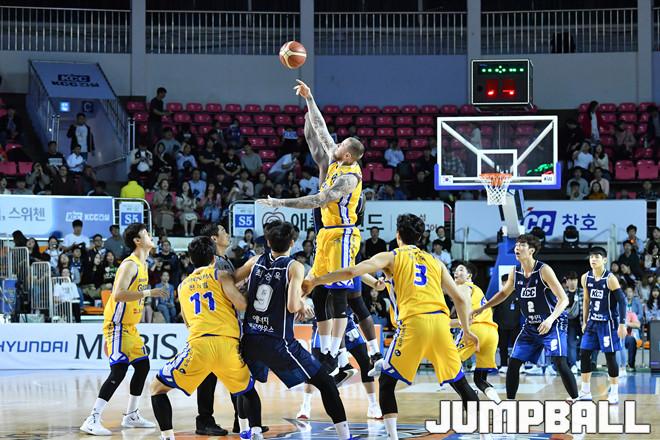 [JB포토] 전주 KCC와 서울 삼성의 경기 시작 '점프볼'