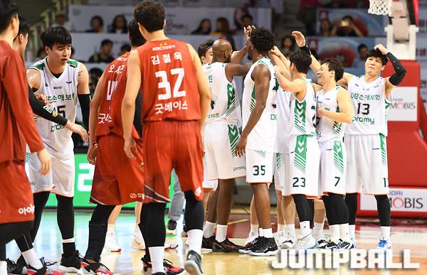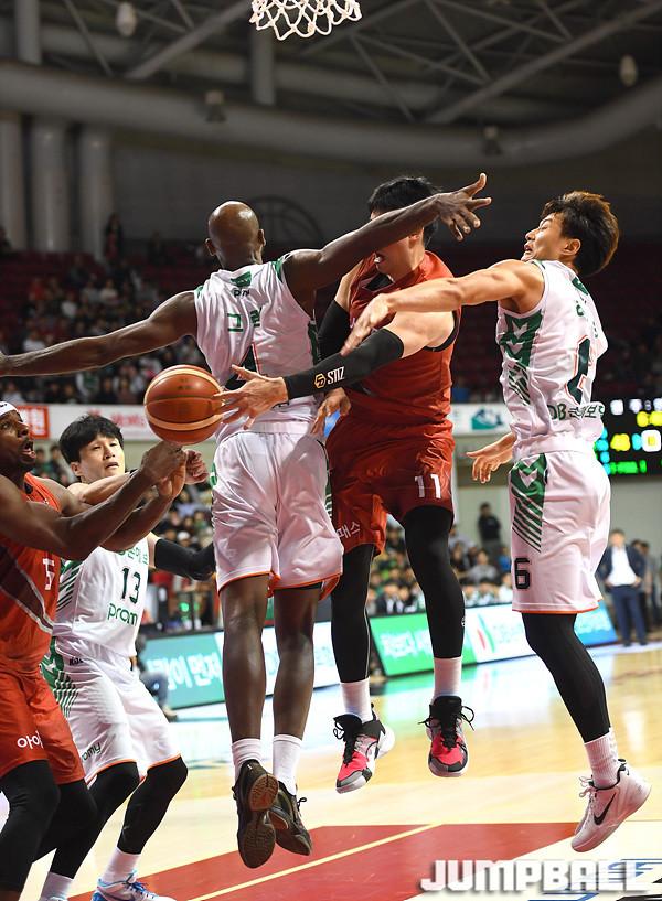 DB 김종규(18득점 2리바운드 3어시스트 1스틸)와 치나누 오누아쿠(18득점 6리바운드 1어시스트 2블록)이 승부처에서 높이를 과시하며 상대의 추격세를 눌렀다. 여기에 허웅(15득점 2리바운드), 윤호영(13득점 5리바운드 4어시스트 1블록)의 뒷받침도 든든했다.