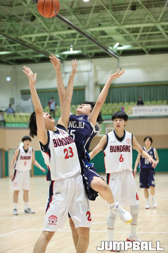 분당경영고가 10일 서울 과기대체육관에서 폐막한 제100회 전국체전 여고부 결승전 경기에서 양지원, 박소희, 나유영 트리오를 앞세워 허예은이 분전한 상주여고를 88-71로 꺾고 금메달을 차지했다.
