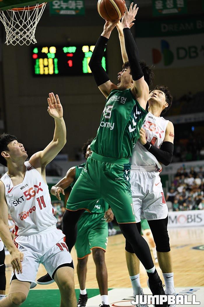 [점프볼=원주/유용우 기자] 12일 원주 종합체육관에서 열린 '2019-2020 현대모비스 프로농구' 원주 DB와 서울 SK의 경기, DB 김종규가 골밑 공격을 시도하고 있다.