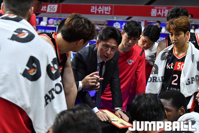 [점프볼=부산/홍기웅 기자] 12일 부산사직실내체육관에서 열린 '2019-2020 현대모비스 프로농구' 부산 KT와 서울 삼성의 경기. KT 서동철 감독이 작전을 지시하고 있다.