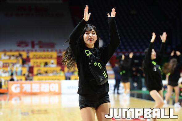 [점프볼=부산/박상혁 기자] 13일 부산사직실내체육관에서 열린 '2019-2020 현대모비스 프로농구' 부산 KT와 인천 전자랜드의 경기, KT 치어리더가 응원을 하고 있다.