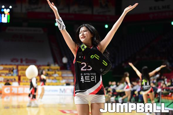 [점프볼=부산/박상혁 기자] 17일 부산사직실내체육관에서 열린 '2019-2020 현대모비스 프로농구' 부산 KT와 전주 KCC의 경기, KT 치어리더가 응원을 하고 있다.