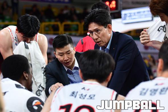 [점프볼=창원/박상혁 기자] 19일 창원실내체육관에서 열린 '2019-2020 현대모비스 프로농구' 창원 LG와 부산 KT의 경기, KT 서동철 감독이 선수들에게 지시를 내리고 있다.