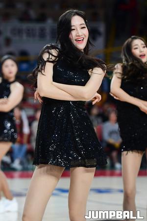 [점프볼=창원/박상혁 기자] 19일 창원실내체육관에서 열린 '2019-2020 현대모비스 프로농구' 창원 LG와 부산 KT의 경기, LG 치어리더가 응원을 하고 있다.