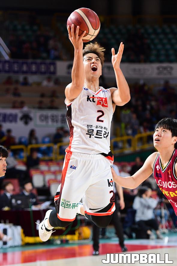 [점프볼=창원/박상혁 기자] 19일 창원실내체육관에서 열린 '2019-2020 현대모비스 프로농구' 창원 LG와 부산 KT의 경기, KT 허훈이 레이업슛을 시도하고 있다.