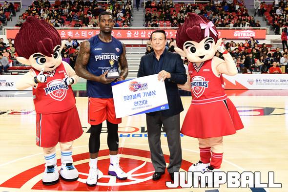 [JB포토] 현대모비스 라건아 500블록 기념 시상