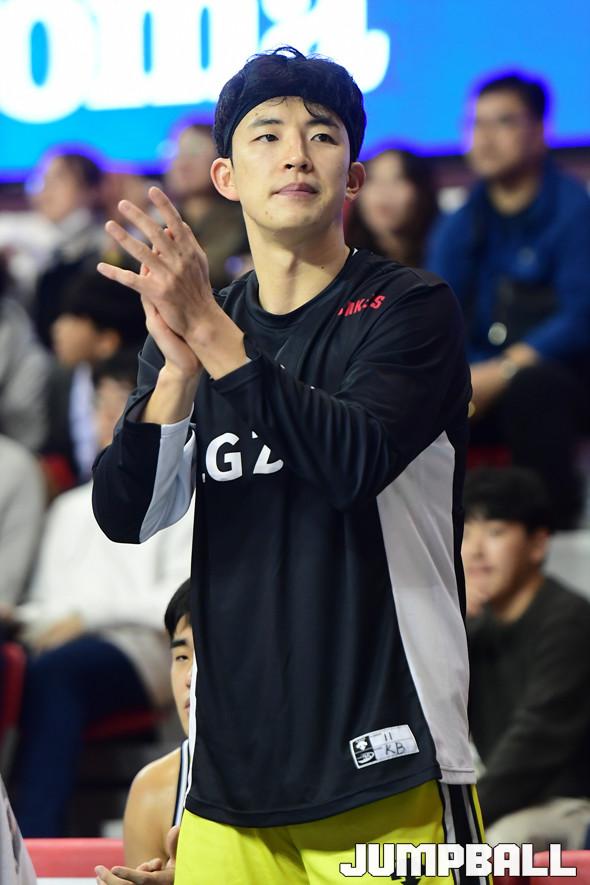 [점프볼=울산/박상혁 기자] 22일 울산동천체육관에서 열린 '2019-2020 현대모비스 프로농구' 울산 현대모비스와 창원 LG의 경기, LG 강병현이 선수들에게 박수를 보내고 있다.