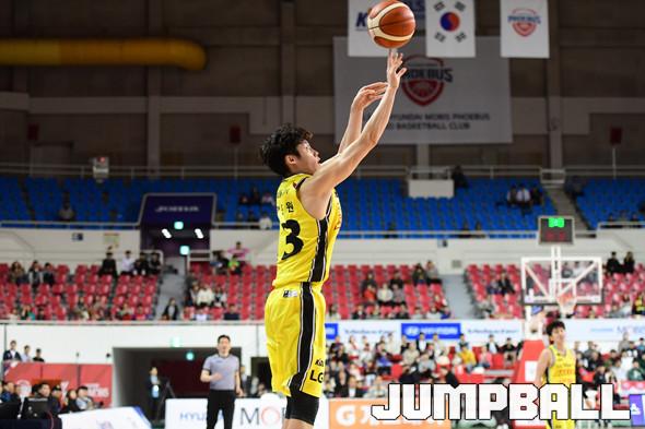 [점프볼=울산/박상혁 기자] 22일 울산동천체육관에서 열린 '2019-2020 현대모비스 프로농구' 울산 현대모비스와 창원 LG의 경기, LG 정준원이 추격의 3점슛을 시도하고 있다.