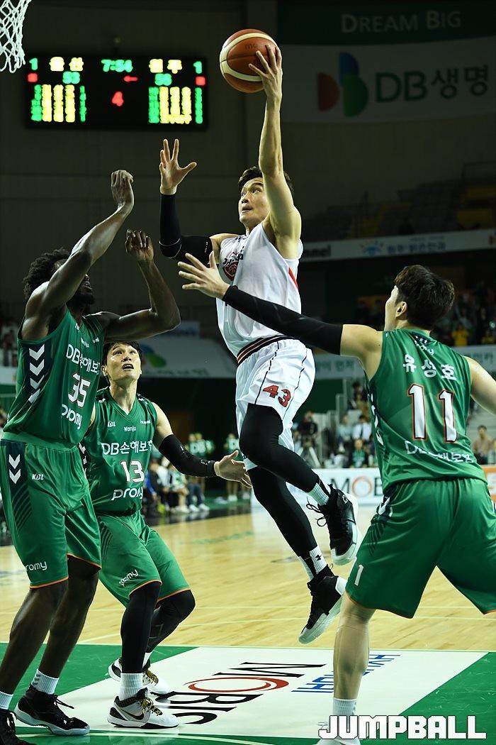 [점프볼=원주/유용우 기자] 원주 DB는 25일 원주종합체육관에서 열린 2019-2020 현대모비스 프로농구 울산 현대모비스와의 홈경기에서 77-63으로 승리했다. 원주 DB와 울산 현대모비스의 경기 화보