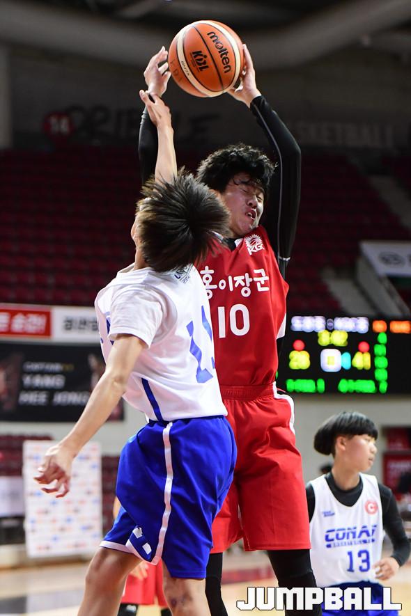[점프볼=안양/박상혁 기자] 26일 안양실내체육관에서 '2019 KBL 스쿨리그 안양 예선' 경기가 열렸다. 중등부 결승에서는 KGC 중등부가 도장중에 50대 30으로 승리하며 우승을 차지하였다. KGC 중등부와 도장중의 중등부 결승 경기 화보