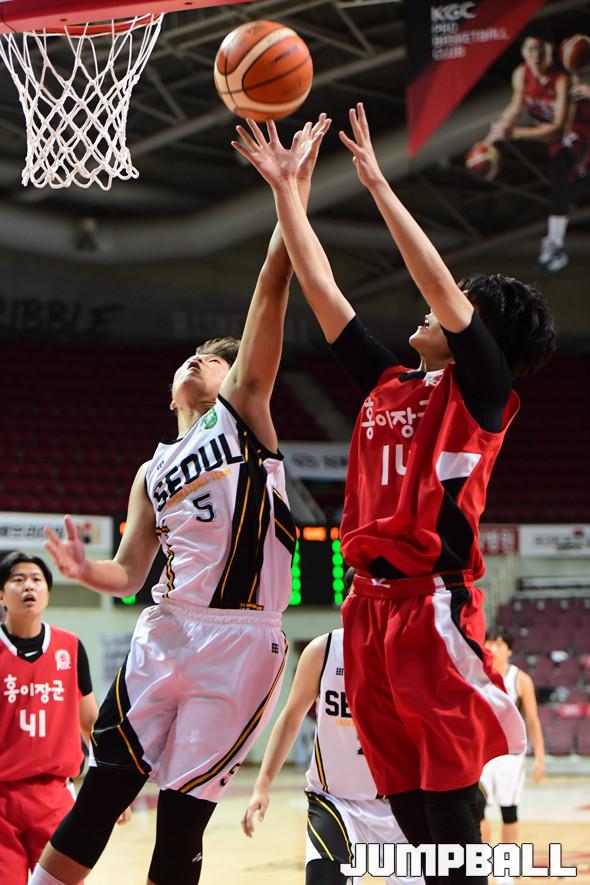 [점프볼=안양/박상혁 기자] 26일 안양실내체육관에서 '2019 KBL 스쿨리그 안양 예선' 경기가 열렸다. 고등부 결승에서 KGC 고등부가 오금고에 34대 25로 승리하였다. KGC 고등부와 오금고 결승전 경기 화보