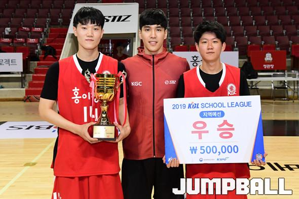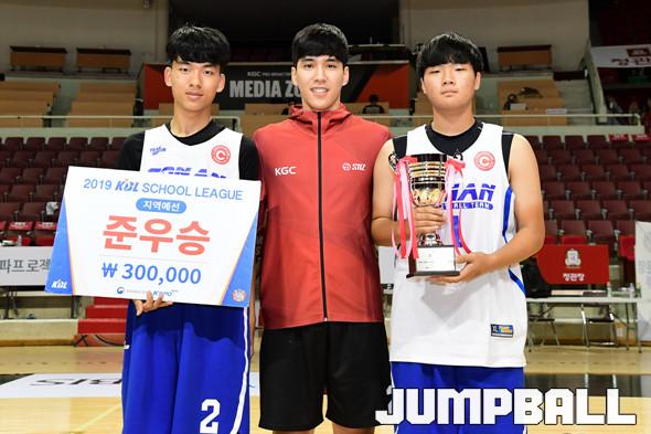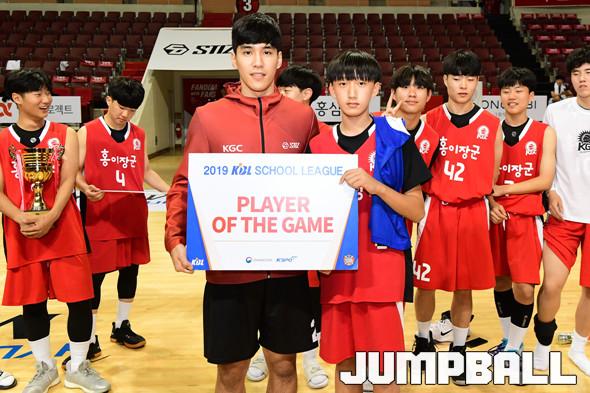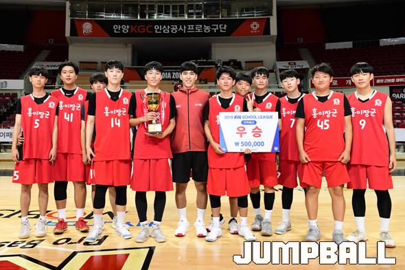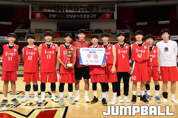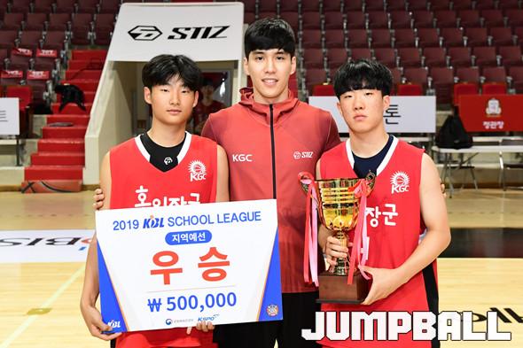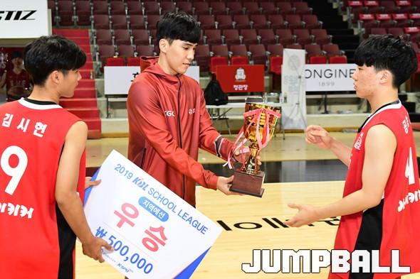 [점프볼=안양/박상혁 기자] 26일 안양실내체육관에서 '2019 KBL 스쿨리그 안양 예선' 경기가 열렸다. 결승전에서 KGC 중등부와 고등부가 각각 도장중과 오금고에 승리를 거두며 우승을 차지하였다. 시상식 포토화보