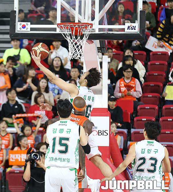 [점프볼=인천/한명석 기자] 27일 인천삼산체육관에서 열린 '2019-2020 현대모비스 프로농구' 인천전자랜드와 원주DB와의 경기에서 원주 DB 김태홍 선수가 골밑 슛을 성공시키고 있다.