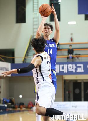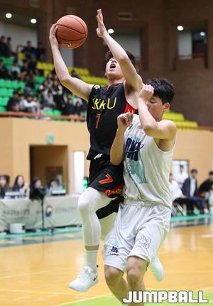 27일 서울 연세대 체육관에서 열린 2019 KUSF 대학농구 U-리그 남대부 챔피언 결정전 연세대와 성균관대의 경기, 연세대가 김경원의 골밑, 전형준, 박지원의 3점포를 앞세워 78-68로 성균관대를 꺾고 통합 우승을 차지했다.