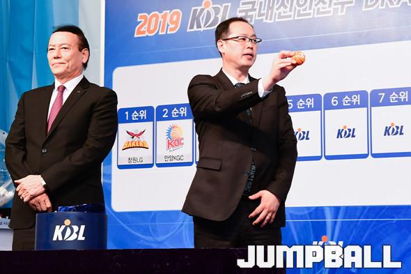 [점프볼=서울/박상혁 기자] 28일 서울 청담 리베라호텔에서 '2019 KBL 국내 신인선수 드래프트 순위 추첨식이 열렸다. 1순위로 LG가 확정되었고, 2순위에는 안양 KGC인삼공사가 확정되었다. 2019 KBL 국내신인선수 드래프트 순위 추첨식 포토화보