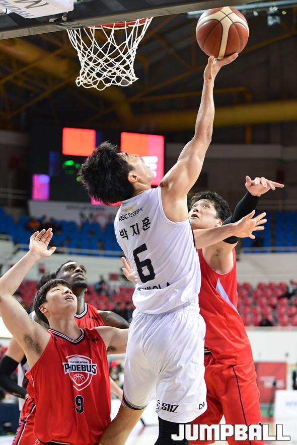[점프볼=울산/박상혁 기자] 30일 울산동천체육관에서 열린 '2019-2020 현대모비스 프로농구' 울산 현대모비스와 안양 KGC인삼공사의 경기, KGC인삼공사가 적지에서 현대모비스에 77대 66으로 승리를 거두었다. KGC인삼공사와 현대모비스 경기 화보.