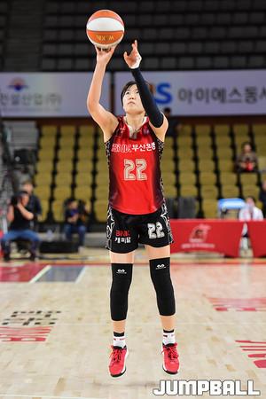 [점프볼=부산/박상혁 기자] 31일 부산스포원파크 BNK센터에서 열린 '하나원큐 2019-2020 여자프로농구' 부산 BNK와 용인 삼성생명의 경기, 삼성생명 김한별이 파울이 불리자 아쉬워 하고 있다.