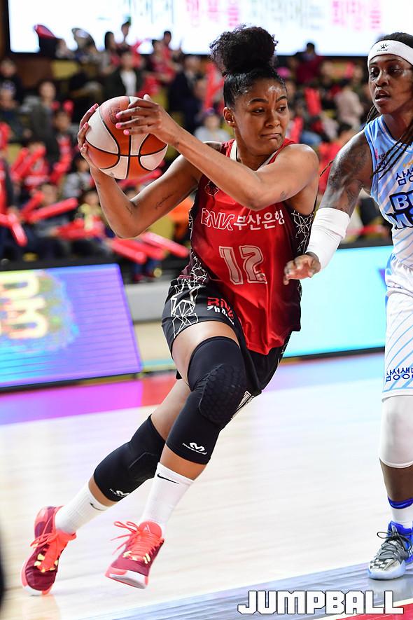 [점프볼=부산/박상혁 기자] 31일 부산스포원파크 BNK센터에서 열린 '하나원큐 2019-2020 여자프로농구' 부산 BNK와 용인 삼성생명의 경기, BNK 단타스가 골밑으로 돌파를 시도하고 있다.