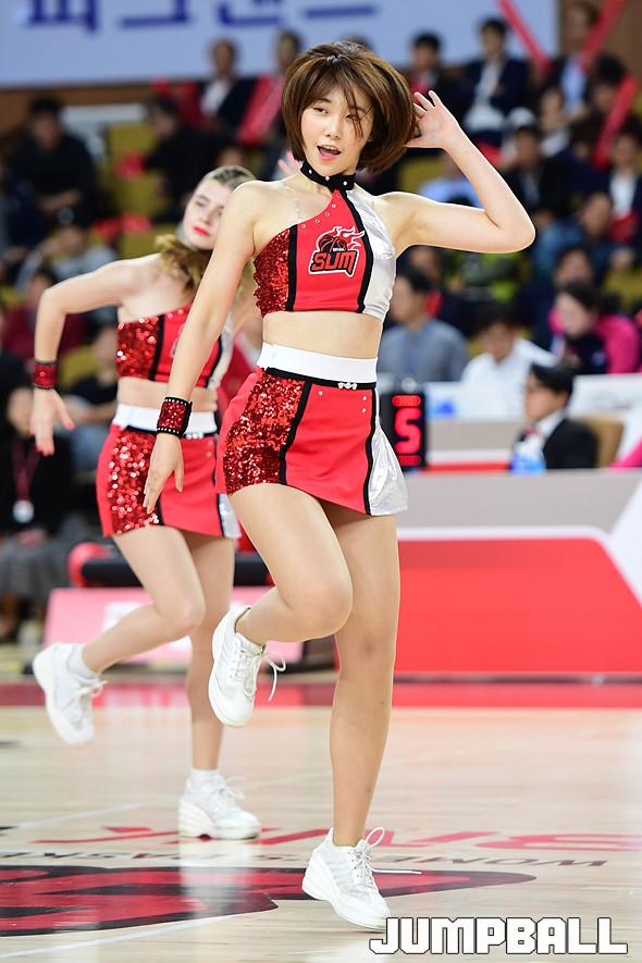 [점프볼=부산/박상혁 기자] 31일 부산스포원파크 BNK센터에서 열린 '하나원큐 2019-2020 여자프로농구' 부산 BNK와 용인 삼성생명의 경기, BNK 치어리더가 공연을 하고 있다.