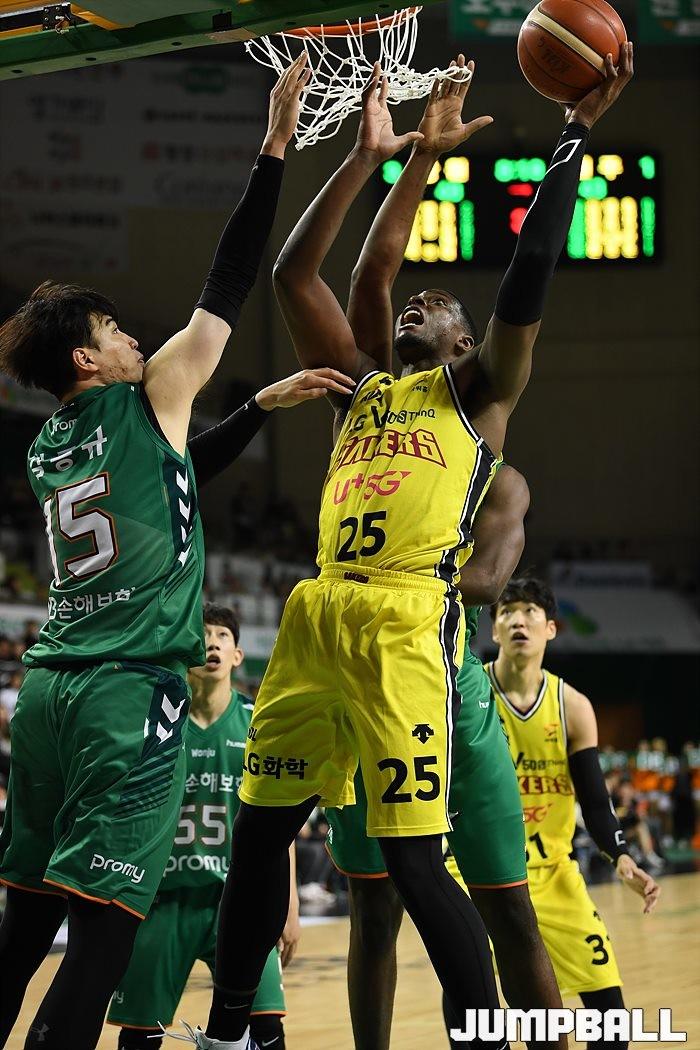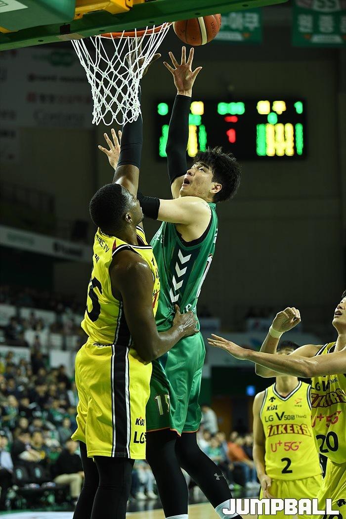 점프볼=원주/유용우 기자] 31일 원주 종합체육관에서 열린 '2019-2020 현대모비스 프로농구' 원주 DB와 창원 LG의 경기, DB가 연장 혈투 끝에 89-83으로 LG에 승리하였다.