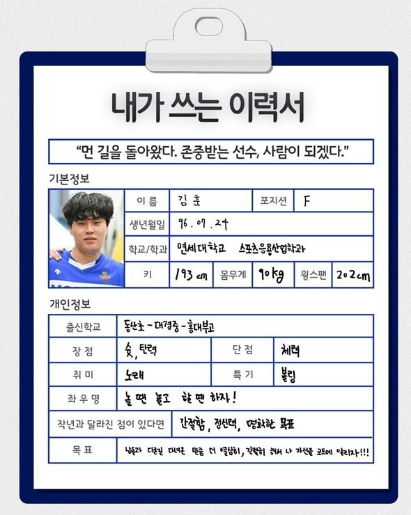 [점프볼=강현지 기자] 2019 KBL 국내신인선수 드래프트에 나오는 예비 프로들이 쓰는 취업이력서. 스물 네 번째 주인공은 연세대에서 농구를 하다가 3x3은 물론 사회경험치까지 쌓고 온 김훈(F, 193cm)이다. 남들보다 한해 늦게 프로무대에 도전한 만큼 이력서도 꽉찼다. 우여곡절 가득한 김훈의 프로무대 도전기를 들어봤다.