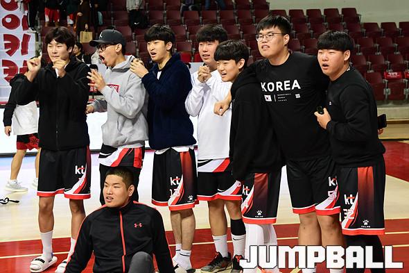 [점프볼=안양/박상혁 기자] 2일 안양실내체육관에서 '2019 KBL 스쿨리그 플레이오프'가 열렸다. 고등부 KT 선수들이 긴장된 표정으로 조추첨을 바라보고 있다.