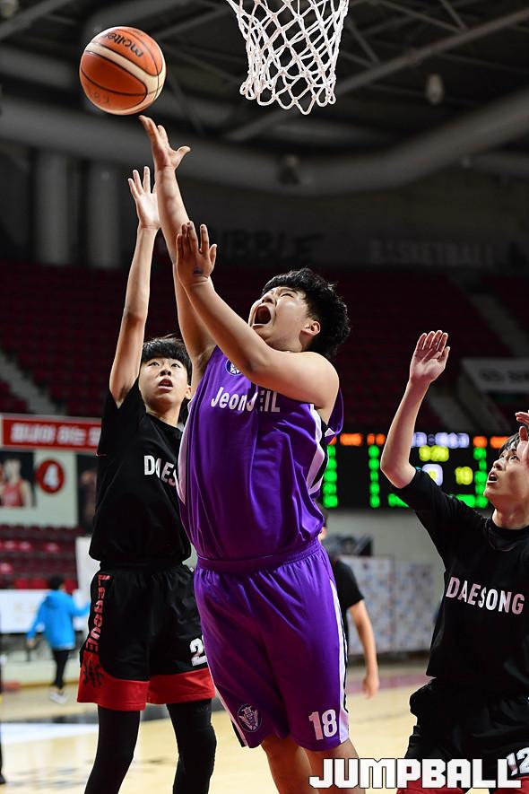 [점프볼=안양/박상혁 기자] 2일 안양실내체육관에서 '2019 KBL 스쿨리그 플레이오프'가 열렸다. 제일고 정민준이 레이업 슛을 시도하고 있다.