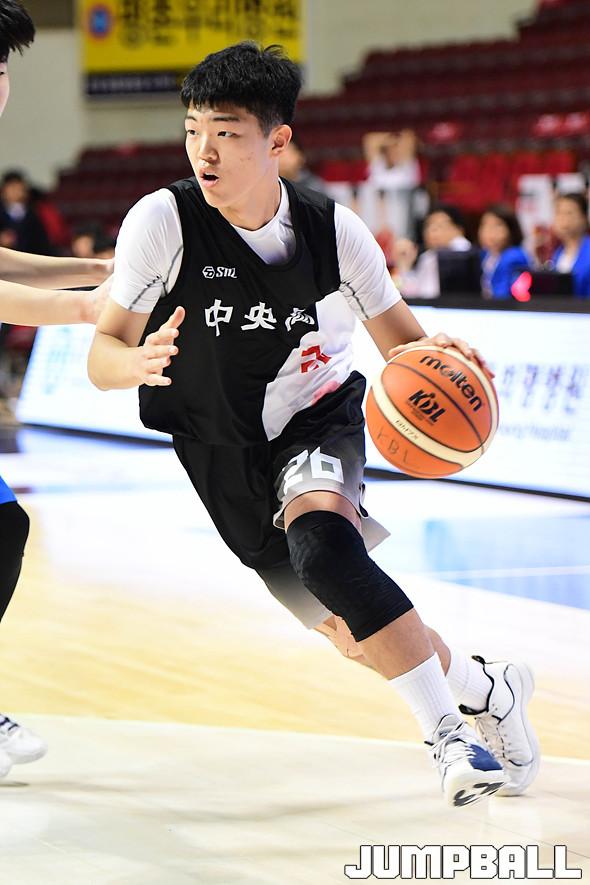 [점프볼=안양/박상혁 기자] 2일 안양실내체육관에서 '2019 KBL 스쿨리그 플레이오프'가 열렸다. 창원중앙고 홍준혁이 돌파를 시도하고 있다.