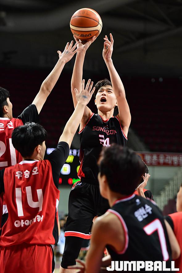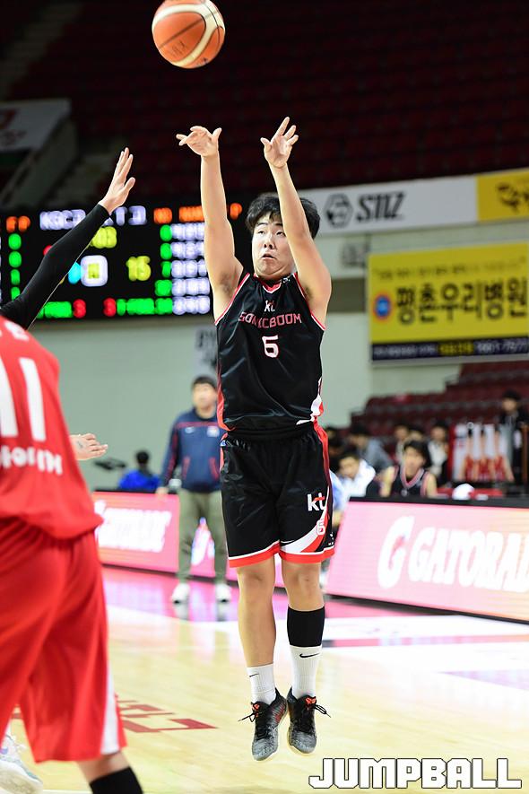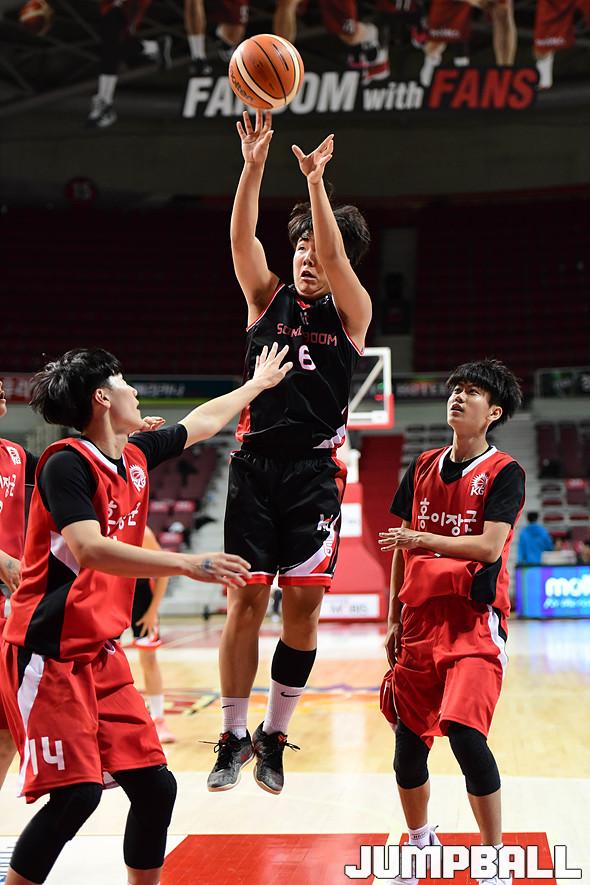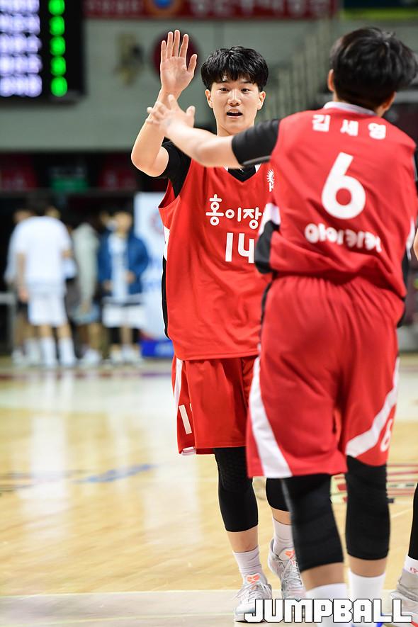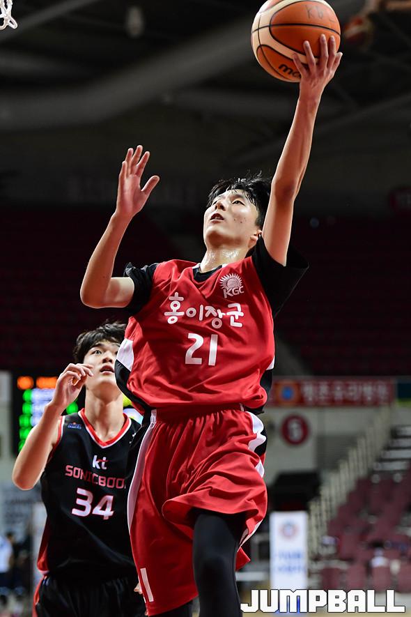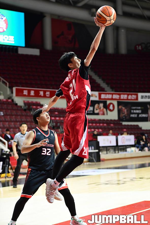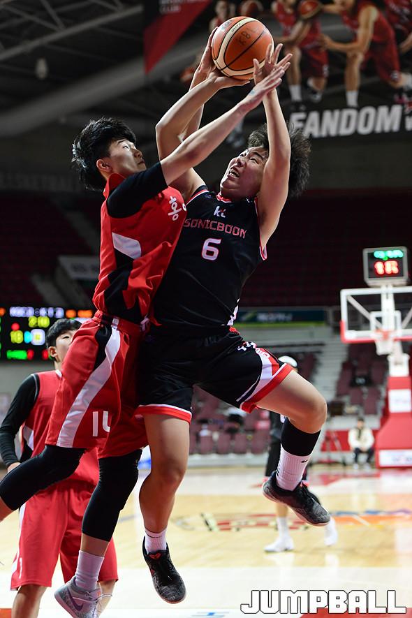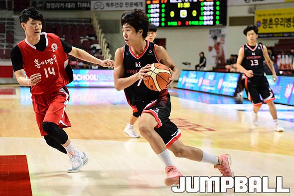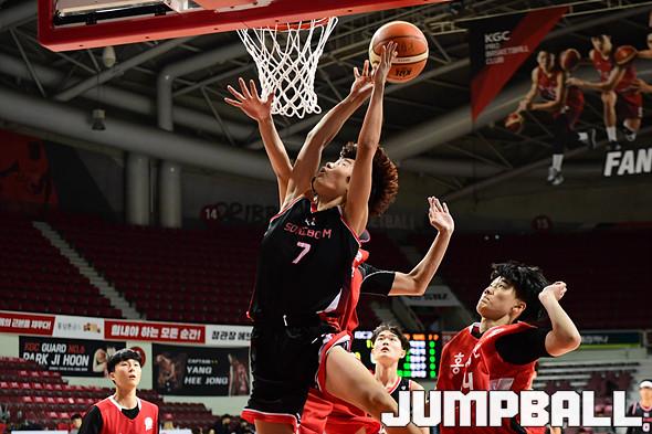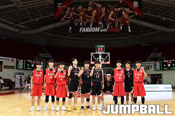 [점프볼=안양/박상혁 기자] 2일 안양실내체육관에서 '2019 KBL 스쿨리그 플레이오프'가 열렸다. KT 고등부와 KGC 고등부의 경기에서는 KGC 고등부가 KT 고등부에 43대 25로 승리하였다. KGC 고등부와 KT 고등부 경기 화보.