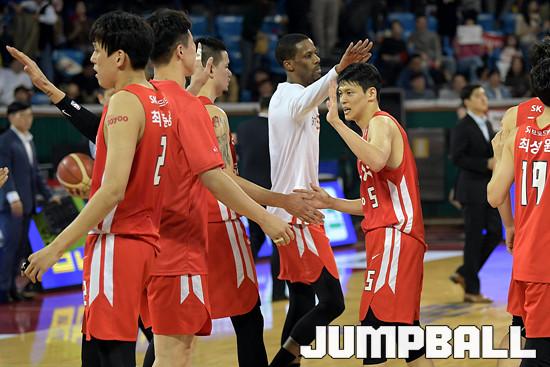 [JB포토] SK, 모비스를 상대로 91-86 으로 승리하며 5연승!