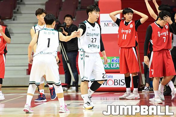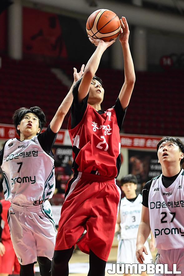 [점프볼=안양/박상혁 기자] 2일 안양실내체육관에서 '2019 KBL 스쿨리그 플레이오프'가 열렸다. 고등부 경기에서는 DB 고등부가 KGC 고등부에 21대 20으로 승리하였다. DB 고등부와 KGC 고등부 경기 화보