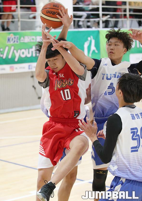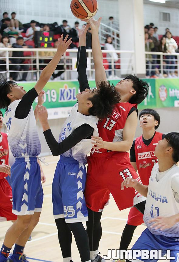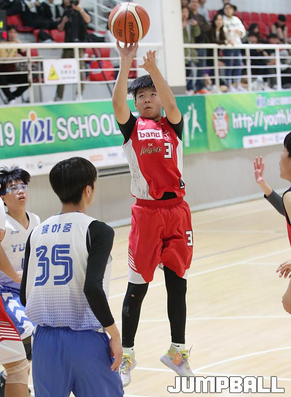 SK는 2일 안양실내체육관 보조경기장에서 열린 2019 KBL 스쿨리그 플레이오프 중등부 1경기 율하중과의 맞대결에서 29-16으로 승리했다.