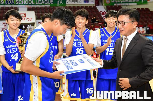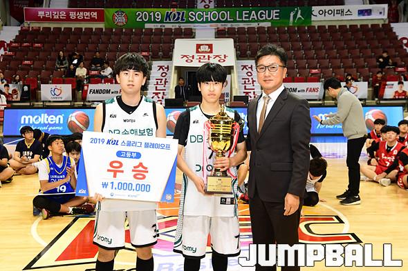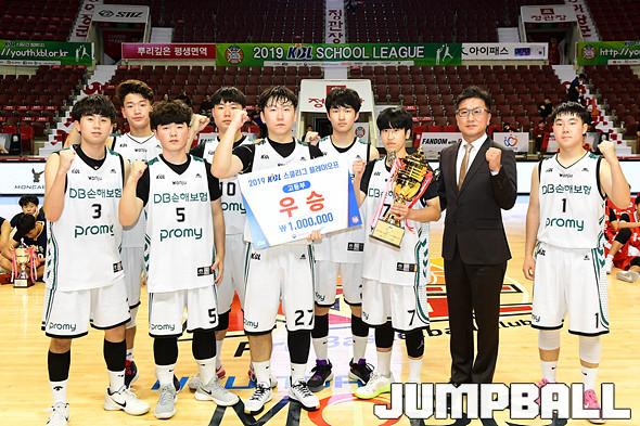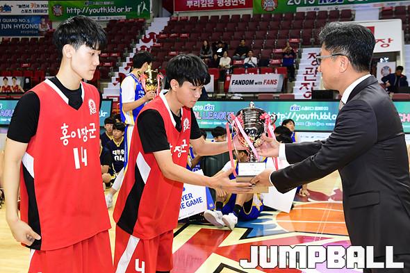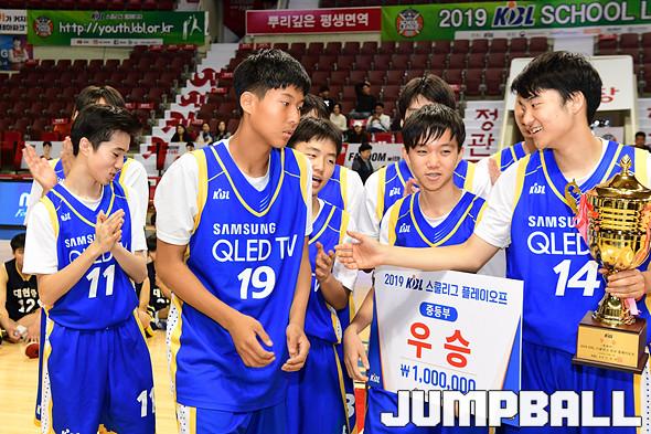 [점프볼=안양/박상혁 기자] 2일 안양실내체육관에서 '2019 KBL 스쿨리그 플레이오프'가 열렸다. 고등부 DB와 중등부 삼성이 우승을 차지하였고 고등부 KGC와 중등부 대현중이 준우승을 차지하였다. 2019 KBL 스쿨리그 플레이오프 시상식 포토화보